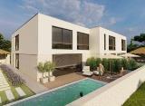Medulin, prekrasna i mirna lokacija, na blagoj uzvisini, 800 m od mora. Moderna vila u izgradnji, ukupne površine 338 m2 s nesmetanim pogledom na more sa svih etaža, sa sljedećim rasporedom: - Podrum: garaža, prostor za igru i fitness, utility, spremište i WC; - Prizemlje: veliki....