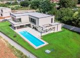 Opis Luksuzna vila sa bazenom površine 359 m2 na dvije potpuno klimatizirane etaže i 880 m2 vrta. U prizemlju kuće nalazi se prostrani dnevni boravak sa kaminom i SAT-TV te izlazom na prostranu natkrivenu terasu sa stolom za objedovanje, kaminom za roštiljanje i lounge zonom, velika,....