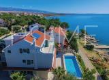 Malinska, Na idealnoj turističkoj lokaciji našla se ova kuća od 500 m2 razvedenih preko četiri etaže povezane unutarnjim stepeništem. U prizemlju su smješteni kuhinja, dnevni boravak i blagovaonica u prostoru otvorenog tipa s izlazom na natkrivenu terasu. Ispred je i veliki bazen....