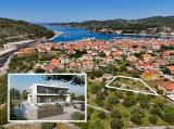 Na prodaju je atraktivna villa na četiri etaže smještena na velikoj parceli, samo nekoliko koraka od kristalno čistog mora i prekrasne plaže. Zgradu je projektirao poznati arhitekt Jerko Rošin koristeći samo najbolje materijale i opremu. U podrumu, površine 129 m2, nalazi se konoba....