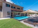 Samostojeća kuća s bazenom, na mirnoj lokaciji, s otvorenim pogledom na more. Kuća se sastoji od suterena, prizemlja, kata te odvojenog apartmana sa zasebnim ulazom, kotlovnice i ostave. U suterenu kuće nalaze se dvije garaže i studio apartman. Prizemlje se sastoji od hodnika, jedne....