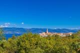 Otok Krk, Krk grad, okolica, na jedinstvenoj lokaciji sa panoramskim pogledom na more, nudi se moderna i luksuzno opremljena vila. 200m2 raspoređeno je kroz dvije etaže. U prizemlju je ulaz u kuću kroz posebno visoka i široka ulazna vrata, gdje je ulazni prostor, WC, kupaonica, sauna....