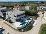 Prodaje se nova kuća s bazenom na otoku Viru. Sastoji se od dvije etaže. PRIZEMLJE - dnevni boravak, kuhinja i blagovaonica (39.93 m2), hodnik (2.98 m2), WC (3.39 m2), natkriveni ulaz (3.89 m2), natkrivena terasa (6.49 m2), stepenište (4.31 m2) 1. KAT - 3 spavaće sobe (2 x 14.92 m2,....