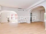 Nenamješten ured/stan u prizemlju zgrade od 140 m2, sastoji se od ulaza, kupaonice, kuhinje sa bagovaonom i dnevnim boravkom, 2 spavaće sobe svaka sa svojom kupaonicom, ostave i prostrane terase. Nekretnina je kvalitetno renovirana: nova stolarija, zidovi, podovi, instalacije. Ured....