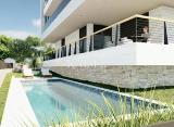 Nudimo apartman u modernoj zgradi sa 4 dvoetažna apartmana od kojih dva imaju izlaz na vrt i bazen, dva imaju krovnu terasu sa pogledom na more. Na prvom katu nalazi se spavaća soba s vlastitom kupaonicom, garderobom i wc-om s vešerajem. Druga etaža se sastoji od otvorenog dnevnog....
