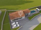 Nekretnina u Roh Bau stanju, kuća prizemnica s bazenom. Nekretnina je ozidana, stavljena pod krov, zatvorena PVC stolarijom, Instalacija struje, vode provedena. Glazure, podno grijanje. , Bazen Izgrađena je na 446 m2 zemljišta, sastoji se po projektu od tri spavaće sobe, dvije kupaonice,....