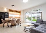 Stan se sastoji od prostranog ulaznog hodnika s ugradbenim ormarima koji vodi do velikog open space dijela, u kojem su skladno povezani dnevni boravak, kuhinja i blagovaonica. Iz dnevnog dijela izlazi se na vrt, što pruža dodatni osjećaj mira i privatnosti. Spavaći dio odvojen je....