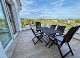 U samom centru Poreča na zadnjem katu stambene zgrade prodaje se stan sa predivnim pogledom na more. Stan je površine 64 m2 i sastoji se od ulaznog hodnika, kupaonice, kuhinje i blagavaonice, dnevnog boravka, dvije spavaće sobe i ostave. Budući stan nema balkon ima na korištenje veliku....