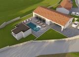 Građevinsko zemljište površine 841 m2 smješteno u okolici Poreča, 10ak km od centra grada, i svega 2km od izlaza s autoputa. Zemljište posjeduje građevinsku dozvolu s plaćenim komunalnim doprinosom za obiteljsku kuću s bazenom. Kuća je montažna, izgrađena od modernih, održivih materijala.....