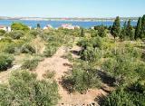 Atraktivno građevinsko zemljište pravilnog oblika, površine 800 m2, smješteno cca 200 metara od mora, prilaz autom, priključci vode i struje u neposrednoj blizini, mogućnost gradnje dva objekta, pogled na more. .