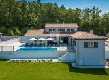 U mirnom mjestu udaljenom 5 km od grada Poreča i 2 km od plaže nalazi se ova ekskluzivna moderna dvojna vila. Vila ima 2744m2 stambene površine, te se sastoji od prizemlja, kata i visokog potkrovlja. Prizemlje se sastoji od ulaznog hodnika, kuhinje, blagovaonice, dnevnog boravka,....