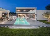 U središnjoj Istri u manjem naselju Šivati smjestila se ova moderna vila ukupne stambene veličine od 308 m2 s dodatnim objektom od 34 m2, vanjskim bazenom, saunom, jacuzzijem na okućnici od 1136 m2.Vila se prostire na dvije etaže, na prvoj etaži u prizemlju se smjestila jedna spavaća....