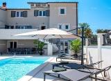 Kuća s bazenom, na samo 50m udaljenosti od mora. Sastoji se od ukupno 7 apartmana. U prizemlju kuće nalaze se 4 apartmana od kojih su: tri jednosobna apartmana i jedan dvosobni apartman Jednosobni apartmani sastoje se od: dnevni boravak sa kuhinjom, spavaća sobu i kupaona. Dvosobni....
