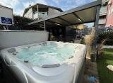 Novoizgrađena villa visokih stropova na velikoj parceli. Bazen 75m2 grijanij, protistrujno plivanje Jacuzzi Velikji vrt sa palmama Alu stolarija, luksuzno uređena i namještena Ima 4 sobe 22,15,15,11 m2 3 wc 6.5, 6.5, 7.5m2 Mogućnost dodati još sobu ili wc zbog velikoga hodnika Završena....