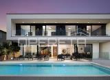 Trogir,Plano, luksuzna moderna villa 318 m2 sa bazenom na mirnoj lokaciji sa lijepim pogledom na more .Villa se nalazi na parceli od 583 m2 a sastoji se od dvije etaže i prohodne krovne terase. Na prizemlju se nalazi wellnes sa jaccuzijem i saunom te kupatilom sa tušem iz kojih se....
