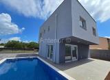 Elegantna prizemnica u modernom stilu, izgrađena na površini od 415 m², stambene površine 90 m². Sastoji se od prostranog dnevnog boravka, blagovaonice i kuhinje, dvije spavaće sobe i dvije kupaonice. Iz dnevnog dijela se izlazi na prostranu terasu od 100 m2 gdje se nalazi grijani....