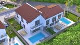 Kuća se sastoji od prizemlja i kata koji su povezani unutarnjim stepenicama i čine jednu stambenu cjelinu. Prizmemlje se sastoji od natkrivenog ulaza,hodnika,dnevnog boravka sa kuhinjom i blagovaonicom,wc-a i terase sa izlazom na sunčalište i bazen,dok su na katu 3 spavaće sobe svaka....
