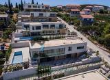 Čiovo,Okrug Gornji,kompleks od pet modernih vila,trosoban stan 154.44m2u prizemlju novogradnje s vrtom i bazenom. Stan ima 110.39m2 stambene površine,tri spavaće sobe,dvije kupaone,hodnik,dnevni boravak s kuhinjom i blagovaonom,terasu 34.5m2 te vrt s bazenom 205.5m2. Pripadaju mu....
