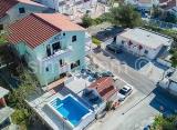 Vrlo elegantna stambena kuća u Okrugu Gornjem, blizu mora i plaže, sa šest stambenih jedinica. Uzdiže se na četiri etaže sa 372 kvadrata bruto stambenog prostora, čvrste i kvalitetne gradnje, odlično opremljena i namještena. U suterenu se smjestila garaža za jedno vozilo te prostorija....