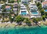 Novoizgrađena vila s bazenom smještena na otoku Čiovu, u prvom redu do mora. Vila je ukupne stambene površine 349m2 te se nalazi na zemljištu ukupne površine 700m2. Prostire se na tri etaže izgrađene na kaskadnom terenu te se sa svih etaža pruža zadivljujući otvoreni pogled na more.....