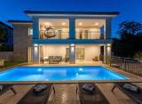 Moderna vila s bazenom smještena na atraktivnoj lokaciji s prekrasnim pogledom na more. Vila se nalazi na mirnoj lokaciji te je udaljena od mora i predivnih plaža 500 m. Luksuzna nekretnina stambene površine 221.6 m2 se prostire na tri etaže. Podrum se sastoji od fitness prostorije,....
