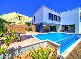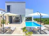Moderna vila s bazenom smještena na atraktivnoj lokaciji s prekrasnim pogledom na more. Vila se nalazi na mirnoj lokaciji te je udaljena od mora i predivnih plaža 500 m. Luksuzna nekretnina stambene površine 221.6 m2 se prostire na tri etaže. Podrum se sastoji od fitness prostorije,....