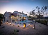 OTOK KRK, LINARDIĆI ? Moderna vila s bazenom, pogledom na more i četiri spavaće sobe U mirnom naselju Linardići na otoku Krku, svega 1,5 km od mora, smjestila se ova elegantna vila koja spaja udobnost modernog života s mediteranskim šarmom. Okružena njegovanom okućnicom, kuća pruža....