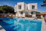Otok Krk, Dobrinj. Samostojeća kuća s bazenom. Kuća površine 130 m2, sastoji se od : - prizemlje : tri spavaće sobe, dnevni boravak sa kuhinjom sa blagovaonom, spremište, kupaonica, velika terasa 40 m2 sa vrtnim kaminom. - potkrovlje : jedna spavaća soba, mini kuhinja, kupaonica,....