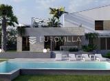 Grad Krk, okolica, prodaja, impozantna vila s bazenom, na mirnoj lokaciji, rub građevinske zone, u izgradnji! Vila površine 238 m2 sastoji se od prizemlja i kata, povezanih unutarnjim stepeništem. U prizemlju objekta nalazi se ulazni prostor, hodnik, spremište, wellness, open space....