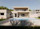 EKSKLUZIVNA PONUDA! Kompleks od tri vile u nizu. Svaka vila od 121,03 m2 sa okućnicom 61,93 i bazenom, jedinstvenog dizajna od investitora koji imaju svoj poseban, upečatljiv ugodan moderni stil. Dizajn pun svježine, samo 400m do mora! Svaka vila ima prostor koncipiran i opremljen....