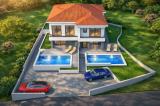 Krk, Kornić. Nova kuća sa bazenom i pogledom na more. Kuća stambene površine 150 m2, sagrađena na parceli 518 m2, sastoji se od: -Prizemlje: dnevni boravak sa kaminom, kuhinja sa blagovaonicom, toalet, spremište sa centralnim bojlerom, natkrivena terasa sa izlazom na okućnicu -Kat:....