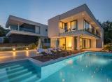 Moderna luksuzna dvojna vila s bazenom smještena je na brežuljku iznad Opatije s očaravajućim pogledom na Kvarnerski zaljev. Vila se proteže kroz tri etaže povezane unutarnjim stubištem. U prizemlju vile se nalazi prostrani otvoreni dnevni boravak, zatim blagovaonica s modernom kuhinjom.....