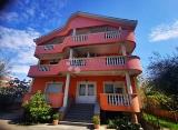Velika, samostojeća kuća apartmanskog tipa, u prvomredu do mora. Kuća se nalazi na zemljištu od 480 m2. Sastoji se od 12 apartmana. Od toga je 6 jednosobnih s dvije kupaonice i 6 studio apartmana. Uz navedeno u prizemlju se nalazi soba s wc-om, te zajednički dnevni boravak. Kuća je....