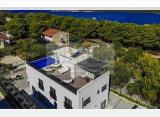 Luksuzna vila u novogradnji, potpuno namještena i opremljena, u 2. redu do mora. Vila je smještena na zemljištu površine 560 m2, dok je stambena površina 250 m2. Sastoji se od 4 etaže podrum, suteren, prizemlje i 1.kat. Ima ukupno 6 spavaćih soba, 8 kupaonica, saunu, 2 prostorije....