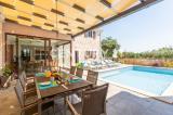 Predivna vila s gostinjskom kućom, bazenom i pogledom na more na rubu polja Ova visokokvalitetna vila s odvojenom gostinjskom kućom, bazenom i nesmetanim pogledom na more smještena je na mirnoj i traženoj lokaciji na rubu stambenog naselja. Maslinik se nalazi neposredno ispred objekta,....