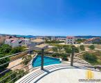 Trogir, luksuzna villa 340 m2 sa bazenom u novogradnji na mirnoj lokaciji sa lijepim pogledom na more .Villa se nalazi na parceli od 510 m2.Na suterenu se nalazi dupla garaža,sa prostorijama za saunu,jacuzzi i prostorom za druženje te wc-om,dok se na prizemlju nalazi kupatilo,hodnik,unutarnje....