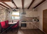 Prodaje se trosoban,namješten stan u prizemlju kuće.Sastoji se od 2 hodnika,ostave,kupaonice,tri spavaće sobe,te dnevnog boravka s kuhinjom i blagovaonom iz koje se izlazi u vrt koji je zaklonjen od vjetra,pa se u njemu može boraviti tokom cijele godine. Stan je sastavni dio kući....