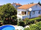 Pinezići, otok Krk, prodaja. Agencija Stan Grad Immobilien u ponudi ima samostojeću kuću s bazenom. Visoka prizemnica udaljena je od mora i plaže označene plavom zastavom oko 800m. Kuća površine 100 m2 sastoji se od dvije samostalne jedinice, dva dvosobna apartmana s dnevnim boravkom,....