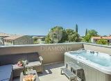 Prodaje se prostran stan s pogledom na more, blizu Umaga.Stan površine 175 m2 sastoji se od velikog dnevnog boravka sa kuhinjom i blagovaonom, dvije spavaće sobe, jedne radne sobe, dva kupatila (u jednom je jacuzzi), natkrivene terase od 53 m2, nenatkrivene terase, te krovne terase....
