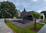 Elegantna prizemnica u modernom stilu, izgrađena na površini od 415 m², stambene površine 90 m². Sastoji se od prostranog dnevnog boravka, blagovaonice i kuhinje, dvije spavaće sobe i dvije kupaonice. Iz dnevnog dijela se izlazi na prostranu terasu od 100 m2 gdje se nalazi grijani....