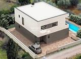 Nova dvoetažna vila površine 140 m2, smještena na rubu prekrasnog sela na sjevernoj strani otoka Brača, cca 3 km od mora, na zemljištu površine 565 m2, koja se sastoji od velikog dnevnog prostora s kuhinjom i blagovaonicom te kupaonicom u prizemlju (60 m2), s velikim staklenim stijenkama....