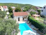ŠMRIKA, u ponudi je samostojeća kuća s bazenom i pogledom na more. Sastoji se od prizemlja i kata, garaže, dvije lijepe terase, prostrane okućnice s bazenom i natkrivenom grill terasom za druženje. Prizemlje: ulazni hodnik, kuhinja s izlazom na terasu, blagovaona, ostava, dnevni boravak....
