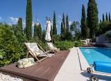 Luksuzna kuća od 240m2 razvedena je na dvije etaže. U prizemlju se nalaze dnevne prostorije (kuhinja, blagovaonica, dnevni boravak), toalet i wellness. Na 1. katu su tri spavaće sobe s kupaonicama. Okružena je s 800m2 velikom okućnicom na kojoj se nalaze terasa, sunčalište, bazen,....