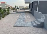 Novoizgrađeni stan na cijelom 1. katu ukupne korisne površine 293,50 m2 s vlastitim bazenom i okućnicom od 488 m2 s vlastitim ulazom.Ima 2 parkirna mjesta u zajedničkoj garaži u suterenu s električnim vratima i liftom za 1. kat. Nalazi se na južnoj strani.Stan se sastoji od ulaza,....