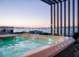 Čiovo,Okrug Gornji,luksuzan 3-soban penthouse 207 m2 u novogradnji sa ljetnom kuhinjom i jacuzzijem, garažnim parking mjestom i jednim vanjskim parking mjestom u zgradi sa liftom.Stan ima 138 m2 unutarnje površine plus 69 m2 u četri balkona. Nalazi se na 4.(zadnjoj) etaži ,sjever-istok-jug....