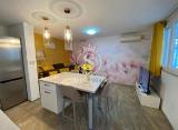 Novouređen stan površine 95m2 na 1.katu.Dvije spavaće sobe, kupaonica, veliki dnevni boravak sa kuhinjom.Velika staklena terasa s pogledom na more, te još jedna velika kupaonica. Svaka soba ima svoj klima uređaj.Stan se nalazi u mirnoj ulici bez auta. Natkriveni parking uz kuću.Udaljen....
