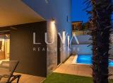Moderan dvoetažni apartman sa vlastitom okućnicom i bazenom. Apartman površine 136 m2 se proteže na dvije etaže, prizemlje i prvi kat. U nekretninu se ulazi na prvom katu koji se sastoji od prostranog dnevnog boravaka, koji ima izlaz na balkon sa kojeg se pruža prekrasan pogled na....