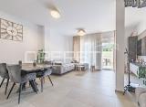 Prodaje se stan na atraktivnoj lokaciji u prizemlju s okućnicom od 85,65 m2, 200 m od mora. Stan se sastoji od ulaznog hodnika, dnevne sobe, kuhinje, dvije spavaće sobe, kupaone, terase i atrija. Za svaku jedinicu osigurana su dva parkirna mjesta koja se nalaze na ulazu na teren a....