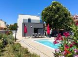 Vižinada ? Kuća s bazenom na mirnoj lokaciji Na prodaju je samostojeća kuća površine 160 m², izgrađena 2012. godine, na parceli od 620 m² u mirnoj okolici Vižinade, 15 km od Poreča. Kuća ima 3 spavaće sobe, 3 kupaonice, prostrani dnevni boravak s kuhinjom, balkon, terasu, natkriveno....