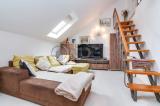 Četverosobni stan smješten u potkrovlju urbane vile na Lašćini, NKP 107.04 m². Prostire se na dvije etaže. Prvu etažu čini hodnik, dvije spavaće sobe od kojih jedna trenutno služi kao garderoba i ima izlaz na balkon, kupaonica s wc-om, kuhinja s ostavom te dnevni boravak s blagovaonom....